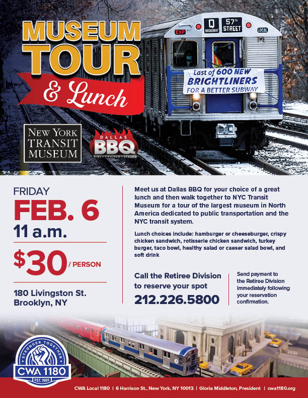 1/29 | Amaze $65/person | New World Stages – Stage 5 Call the Retiree Division to reserve your spot today: 212.226.5800 |